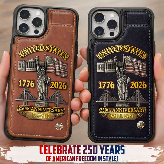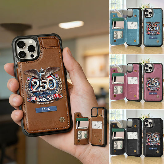 Personalized USA 250 Years Of Freedom Anniversary Leather Wallet Phone Case