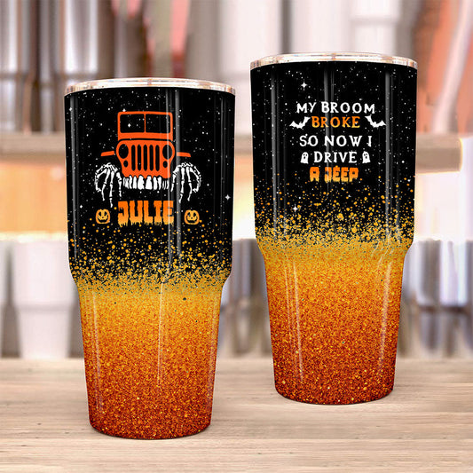 Personalized Jeep Epoxy Trek Tumbler Halloween Spooky Orange Glitter Print 40oz 30oz