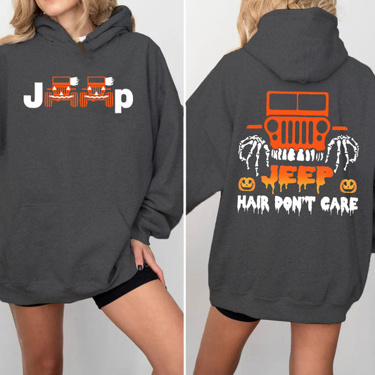 Jeep Hair Don't Care Skull Scary Funny Halloween T-Shirt Hoodie