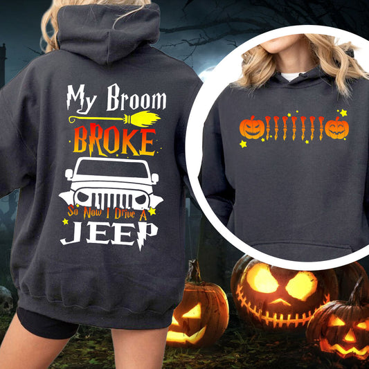 Jeep My Broom Broke Pumpkin Funny Halloween T-Shirt Hoodie
