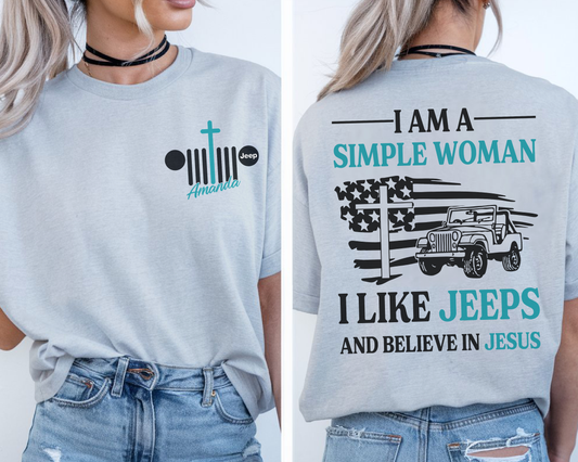 Personalized Jeep I Am A Simple Woman And Believe In Jesus T-Shirt Hoodie
