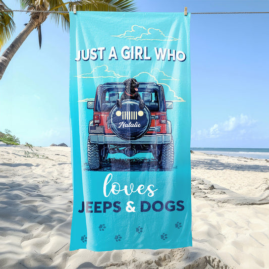 Personalized Just A Girl Who Loves Jeeps & Dogs Beach Towel