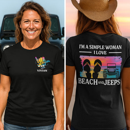Personalized I'm A Simple Woman Love Beach and Jeeps T-Shirt Hoodie