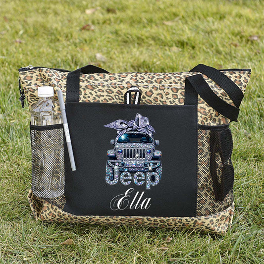 Personalized Jeep Sparkle Rhinestone Tote Bag