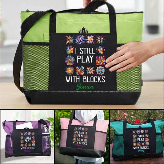 Personalized I Still Play With Blocks Quilting Tote Bag