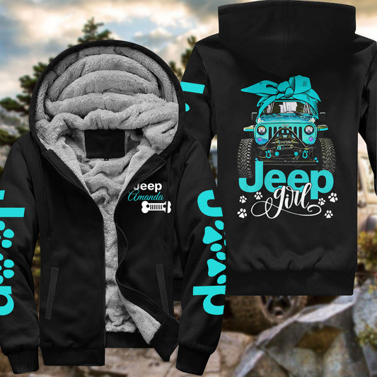 Personalized Jeep Dog Girl Multicolor Fleece Zip Hoodie